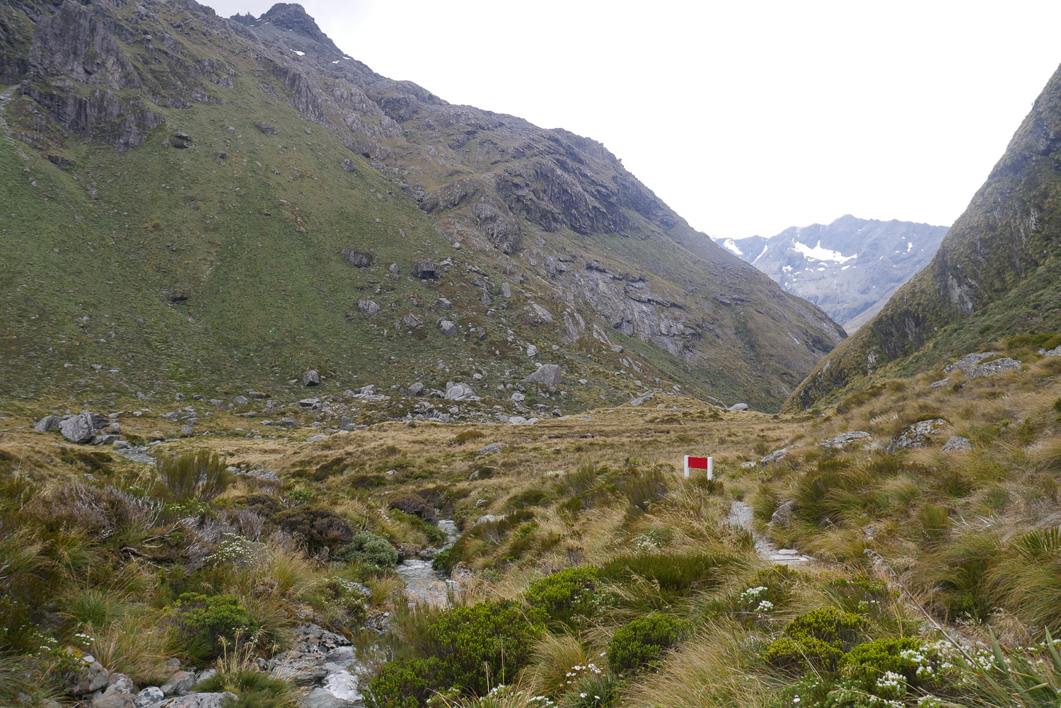 Heute Morgen ist mal so gut wie keiner früh aufgestanden, da am Abend noch eine Wetterwarnung für den Morgen mit Sturm auf dem Sattel ausgegeben wurde, und der Warden die Empfehlung ausgesprochen hat, zu warten, bis um 8 Uhr 30 die Wetteraktualisierung kommt. Wir waren dann am Morgen alle erst mal freudig überrascht, da das Wetter deutlich besser aussah als angenommen. Ich hab dann gefrühstückt und meinen Rucksack gepackt. Gemeinsam mit dem Amerikaner bin ich dann in das Abenteuer aufgebrochen. Kurzusammenfassung: 6 Stunden und 15 Minuten im Regen laufen. Wir hatten zwar nicht die besten Ausblicke, dafür waren aber die Wasserfälle umso beeindruckender. Meine Kamera hab ich aber schon nach der ersten Stunde in den Rucksack gepackt. Am Ende war es dann mit dem Wetter dann doch ganz schön eine Herausforderung. Zwischendurch hat es so gestürmt, dass der Regen angefangen hat wehzutun. Pause gab es nur eine kurze in einer Hütte auf dem Weg und trocken wurde man da auch nicht. Meine Klamotten waren klatschnass und gegen Ende hat auch meine Jacke aufgegeben und hat das Wasser durchgelassen. Arg viel länger hätte der Tag dann auch nicht mehr sein dürfen. Wir waren dann ganz froh es bis zur Hütte geschafft zu haben und zu trockenen Klamotten wechseln zu können. Ich hatte am Morgen noch den Geistesblitz, meinen Schlafsack in einen Müllbeutel zu packen. Das hat sich ausgezahlt, da mein Rucksack im unteren Teil trotz Regenhülle nass war. Der Abend war dann wieder ganz gemütlich und ich hab mit ein paar Amerikaner One Night Werwolf gespielt, eine spannende Variation von dem normalen Werwolf.