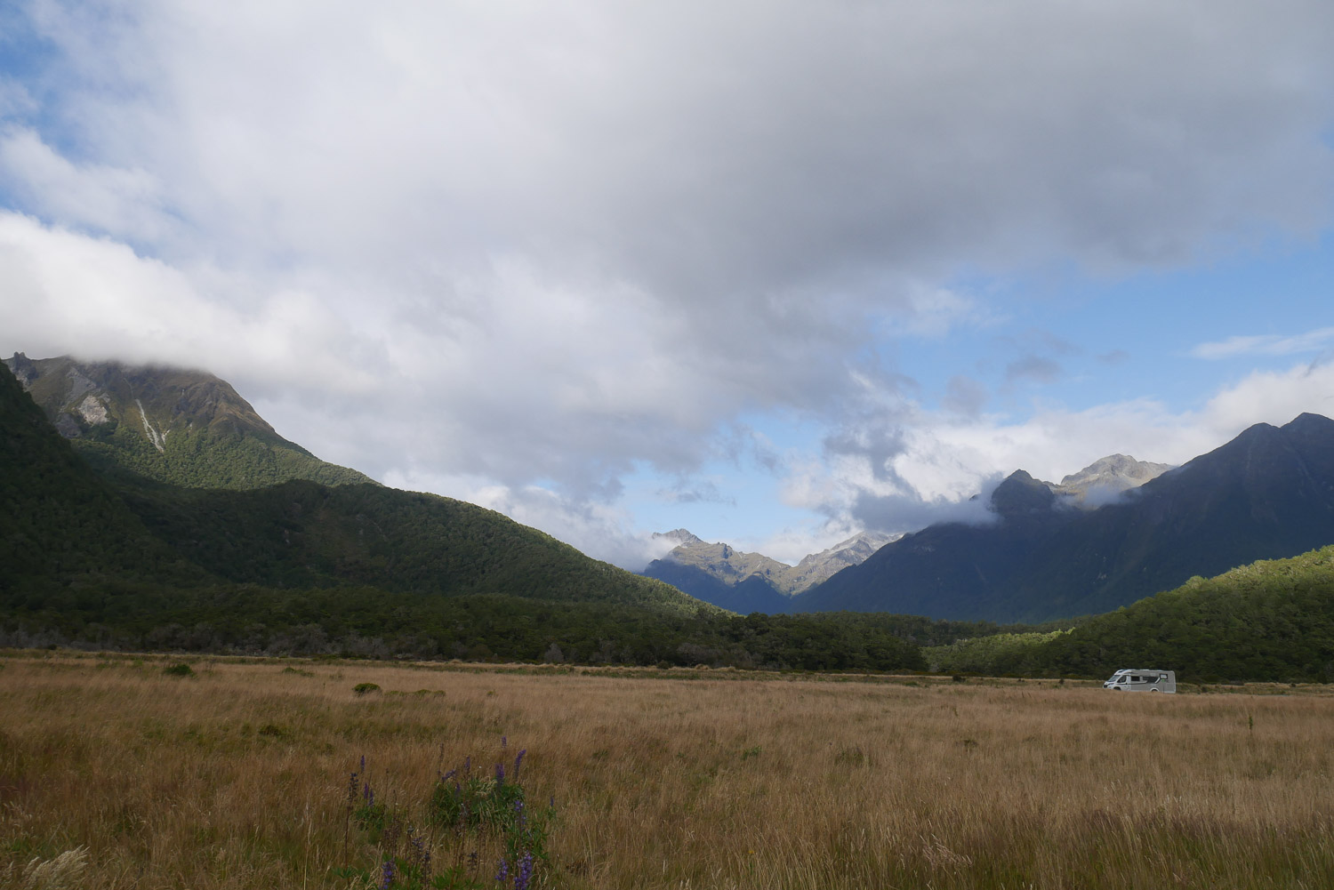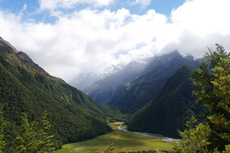 Die Nacht war erstaunlich ruhig in der Hütte. Keiner der geschnarcht hat. Zwei Stunden Fußmarsch waren für heute noch mindestens auf dem Plan bis zum Parkplatz. Nach dem Tag gestern war der Weg heute aber nicht mehr so beeindruckend. Am Parkplatz hab ich dann noch kurz gewartet, ob jemand vorbeikommt, der mich mitnehmen kann. Das wurde mir aber schnell zu blöd und ich bin einfach mal losgelaufen. Keine 10 Minuten später kam auch schon eine deutsche Familie vorbei, die mich mitgenommen hat. Die haben mich dann auch noch auf einen kleinen Abstecher ins Paradies mitgenommen. Ja, es gibt hier einen Ort, der „Paradise“ heißt. Der Name ist auch nicht ganz aus der Luft gegriffen. Es ist schon schön dort. Die Familie hat mich dann bei meinem Auto rausgelassen und ich bin nach Te Anau gefahren. Dort hab ich einen richtig schönen Campingplatz erwischt und hab erst mal geduscht und meine Wäsche gewaschen. Und hier hab ich dann auch gleich noch mal den deutschen vom Routeburn Track getroffen. Ich hab dann für morgen eine Bootstour im Milford Sound gebucht, hab mich ausgeruht und bin früh ins Bett.