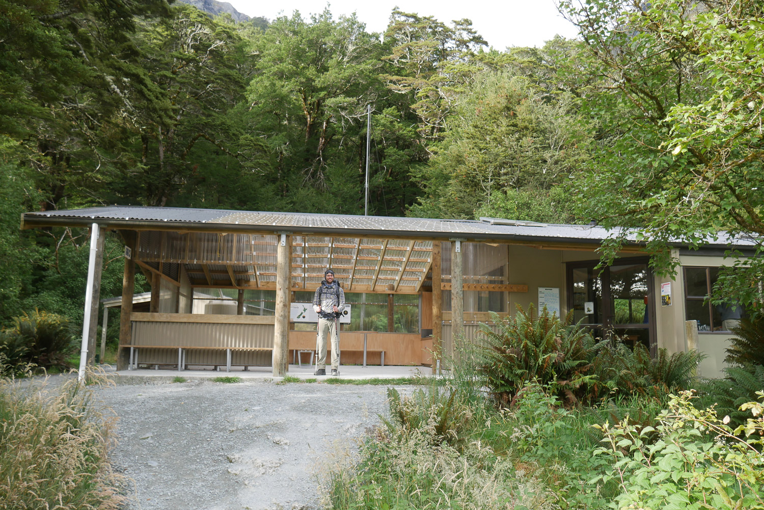 Heute ist der Tag der Tage. Wir laufen fast den ganzen Routeburn Track von der Howden Hut bis zur Flats Hut. Ein bisschen weiter als beim letzten Mal. Der Wetterbericht ist auch etwas besser als beim letzten Mal. Immerhin soll es nur kurze Schauer geben. Morgens beim Aufstehen sah es erst mal mit dem dicken Nebel gar nicht gut aus. Es war dann den Tag über zwar immer noch kein Traumwetter, aber es hat immerhin nicht geregnet und man konnte schon mal deutlich mehr sehen. Zwischendurch hat man sogar blauen Himmel gesehen. Die krassen Aussichten sind auf dem ersten Teil der Strecke immer noch weggefallen, aber nach dem Sattel hatte man immerhin bis nach unten zur Hütte eine schöne Aussicht ins Tal. Auf dem Weg nach unten sind wir dann zuerst bei einem Ranger, der am Weg gearbeitet hat, hängen geblieben. Wir haben uns eine ganze Weile gut unterhalten. Als wir dann endlich weiter gekommen sind, sind wir auch gleich wieder bei einem Kanadier hängen geblieben und hatten noch mal ein gutes Gespräch. Danach gab’s dann nur noch eine kurze Pause in der Falls Hut, bevor es dann vollends zu unserer Hütte für die Nacht ging. Wir haben etwas unter 8 Stunden gebraucht. Eine ganz gute Zeit mit den ganzen Pausen zwischendurch. Die Hütte ist ganz schön und hat eine große Fensterfront mit einer schönen Sicht. Nur waren die Leute in der Hütte heute nicht ganz so interessant. Über die Hälfte waren Asiaten, die schon um 8e im Bett waren. Wir haben uns dann mit einem anderen Deutschen den Abend über unterhalten. Er hat seinen Master in Physik gemacht und bevor er mit dem Doktor anfängt, ist er noch für 3 Monate nach Neuseeland. Die Hut Wardin war auch ganz nett, aber auch nur kurz für einen Hut Talk da.