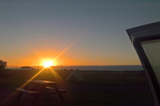 Heute steht Kajakfahren auf dem Programm. Das Wetter scheint mal richtig gut zu sein. Wir haben natürlich nicht vorher gebucht. Beim dritten Verleiher hatten wir dann Glück und es gab noch Platz für die nächste Kajak Tour. Zuerst durften wir uns eine Stunde lang eine Sicherheitsunterweisung anhören und dann ging es endlich zum Wasser, wo wir nach ein paar Übungen mit dem Paddel auch vollends für uns alleine losfahren durften. Wir sahen zwar vermutlich nicht wie die Profis aus, aber wir sind auch nicht gekentert. Zuerst sind wir zu einem Strand fürs Vesper gepaddelt. Danach ging es zu einer Insel mit einer Robbenkolonie. Auf der Insel gab’s dann auch noch mal eine kurze Pause am Strand, bevor es auch schon wieder Zeit war zurück zu paddeln. Der letzte Teil war dann doch recht anstrengend. Die Wellen sind schon größer geworden und es war ein echtes Erlebnis auf dem Rückweg. Wir sind dann aber gut zurückgekommen. War mal was anderes als Wandern, hat aber echt Spaß gemacht, auch wenn es am Ende anstrengend war. Den restlichen Nachmittag lagen wir dann entspannt auf der Wiese vom Campingplatz. Nach einem guten späten Abendessen sind wir dann noch ins Park Café zur Open Mic Night gegangen. War echt cool was da so gespielt wurde. Ich muss wirklich wieder mehr Musik machen. Dort haben wir uns dann noch mit einer Deutschen und einer Schweizerin unterhalten. Die beiden sind mit dem Stray-Bus unterwegs. Das war auch mal ganz interessant zu hören, wie das so ist.