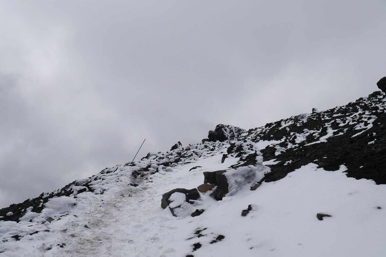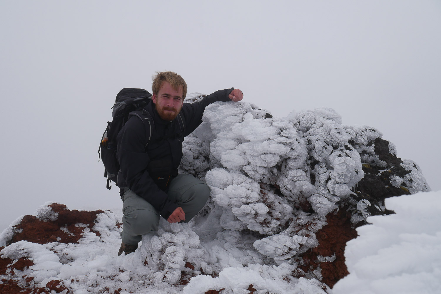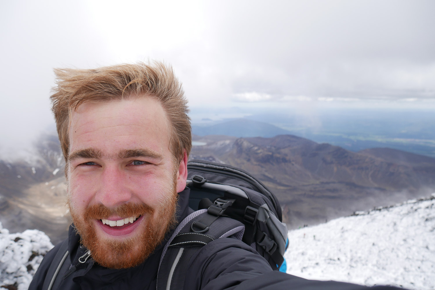 Jetzt musste ich mich auch entscheiden, ob ich den Gipfel vom Mt. Ngauruhoe, besser bekannt als Schicksalsberg aus Herr der Ringe, besteigen möchte. Das Ganze sind gute 3 Stunden extra. Klingt doch nach einer ganz guten Herausforderung. Der Anstieg war dann über Lavageröll und es gab keinen Weg und keine Markierungen. Oben angekommen erwartet einen dann Schnee und Eis. Der erste Teil vom Anstieg war eher ein Schritt voran und ein halber Schritt zurück. Das Lavageröll ist fast wie Sand und man muss ständig aufpassen, dass man keine Steine von oben abbekommt. Man kann dann irgendwann zu festerem Gestein wechseln, dafür muss man dann aber auch mehr klettern. Der Aufstieg ist wirklich sehr anstrengend. Wenn man dann oben ist, wird es nicht viel einfacher. Jetzt kommt der Schnee, Eis und ein starker Wind. Zum Krater läuft man dann noch mal über ein Schnee / Eisfeld. Aber ein tolles Gefühl wenn man es dann geschafft hat. Man genießt es aber nicht allzu lange, da es dann doch recht kalt wird. Ich hatte mit dem Wetter sehr viel Glück und während meinem Aufstieg hatte ich eine wunderbare Aussicht. Kaum war ich oben, ist es zugezogen und man war mitten in einer Wolke und hat keine 5 Meter weit mehr gesehen. Da realisiert man dann auch, wie schnell es doch gefährlich werden kann. Der Weg runter war dann um einiges leichter. Man ist einfach möglichst kontrolliert den Berg runtergerutscht. Garantiert sehr gut für die Schuhe. Auf dem Berg hat man die verrücktesten Leute gesehen. Manche sind dort mit normalen Turnschuhen und kurzer Hose und nur einem Pulli hochgegangen. Generell sieht man viele mit der falschen Ausrüstung. Ich hab insgesamt zwei Stunden hoch und eine Stunde runtergebraucht. Danach war dann erst mal Zeit fürs Vesper und ich hab mich mit ein paar Australiern unterhalten.