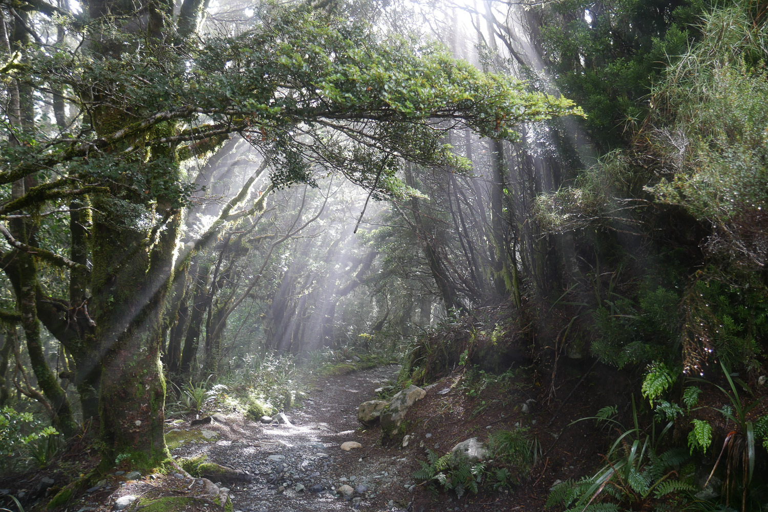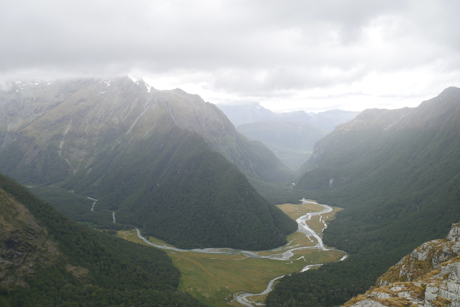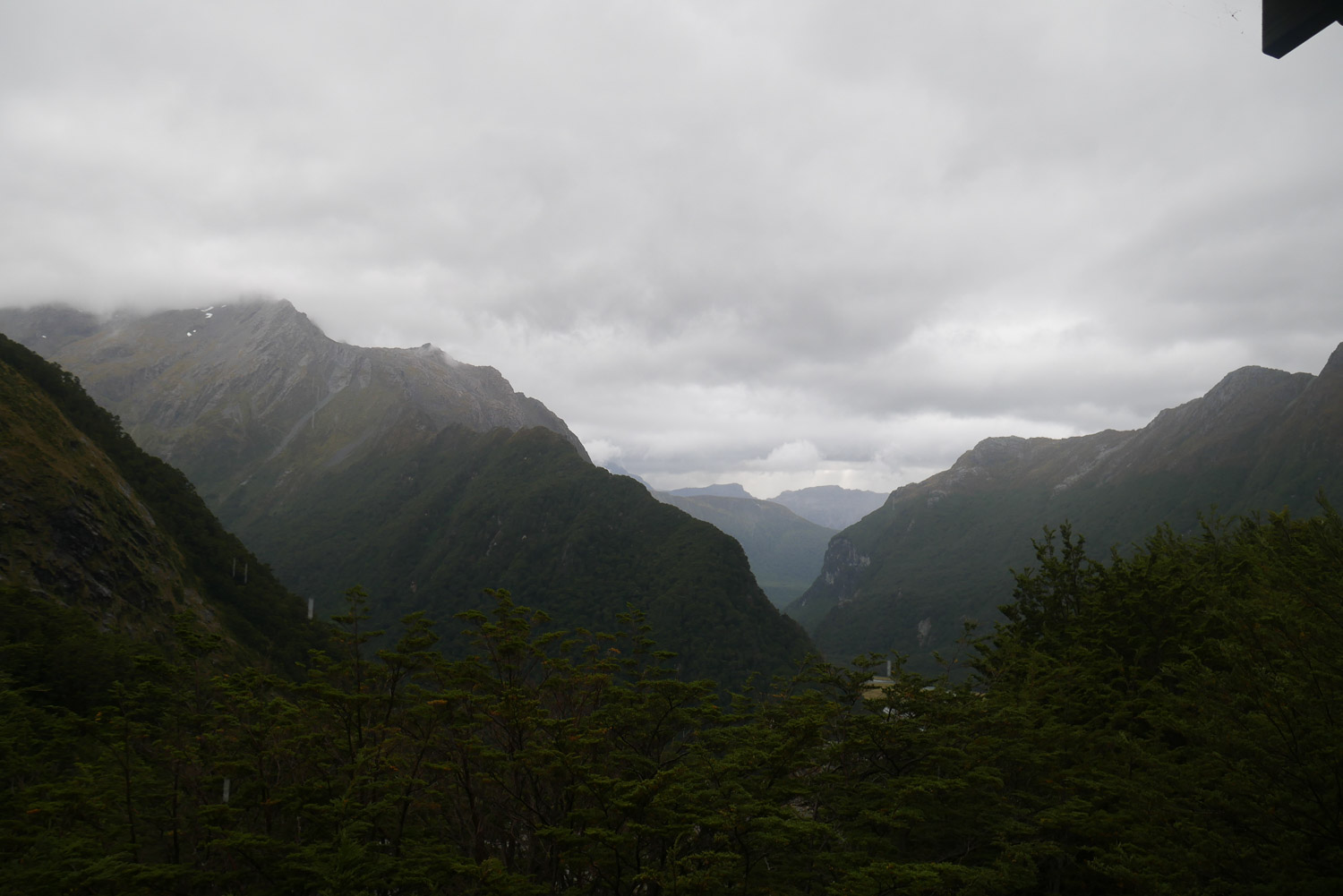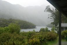 Heute Morgen ist mal so gut wie keiner früh aufgestanden, da am Abend noch eine Wetterwarnung für den Morgen mit Sturm auf dem Sattel ausgegeben wurde, und der Warden die Empfehlung ausgesprochen hat, zu warten, bis um 8 Uhr 30 die Wetteraktualisierung kommt. Wir waren dann am Morgen alle erst mal freudig überrascht, da das Wetter deutlich besser aussah als angenommen. Ich hab dann gefrühstückt und meinen Rucksack gepackt. Gemeinsam mit dem Amerikaner bin ich dann in das Abenteuer aufgebrochen. Kurzusammenfassung: 6 Stunden und 15 Minuten im Regen laufen. Wir hatten zwar nicht die besten Ausblicke, dafür waren aber die Wasserfälle umso beeindruckender. Meine Kamera hab ich aber schon nach der ersten Stunde in den Rucksack gepackt. Am Ende war es dann mit dem Wetter dann doch ganz schön eine Herausforderung. Zwischendurch hat es so gestürmt, dass der Regen angefangen hat wehzutun. Pause gab es nur eine kurze in einer Hütte auf dem Weg und trocken wurde man da auch nicht. Meine Klamotten waren klatschnass und gegen Ende hat auch meine Jacke aufgegeben und hat das Wasser durchgelassen. Arg viel länger hätte der Tag dann auch nicht mehr sein dürfen. Wir waren dann ganz froh es bis zur Hütte geschafft zu haben und zu trockenen Klamotten wechseln zu können. Ich hatte am Morgen noch den Geistesblitz, meinen Schlafsack in einen Müllbeutel zu packen. Das hat sich ausgezahlt, da mein Rucksack im unteren Teil trotz Regenhülle nass war. Der Abend war dann wieder ganz gemütlich und ich hab mit ein paar Amerikaner One Night Werwolf gespielt, eine spannende Variation von dem normalen Werwolf.