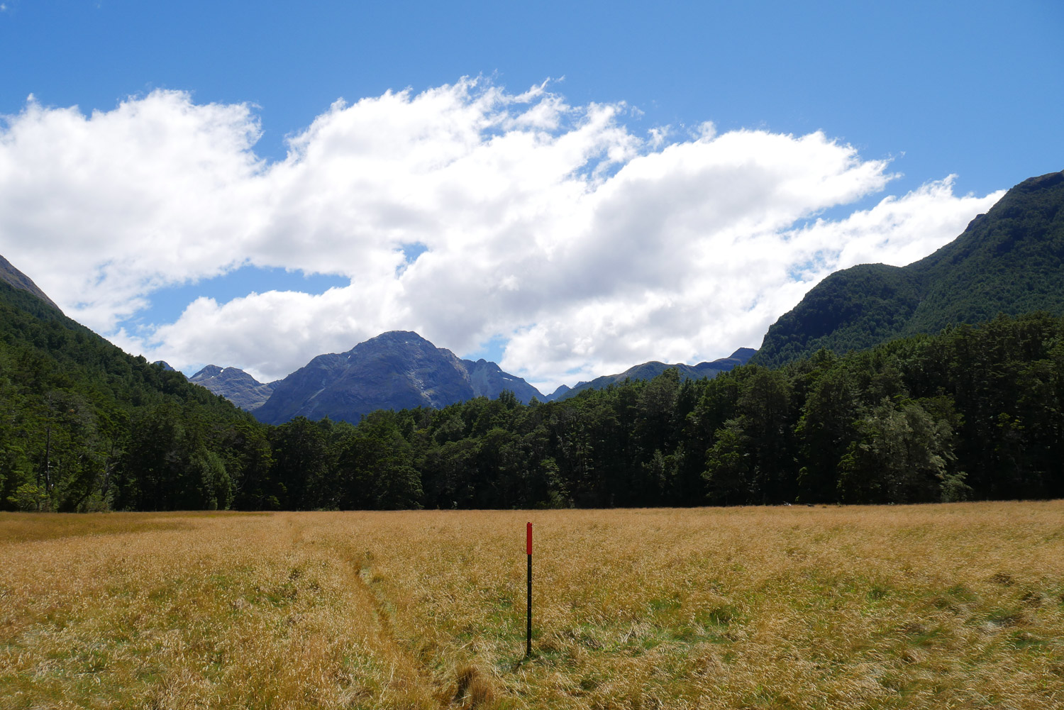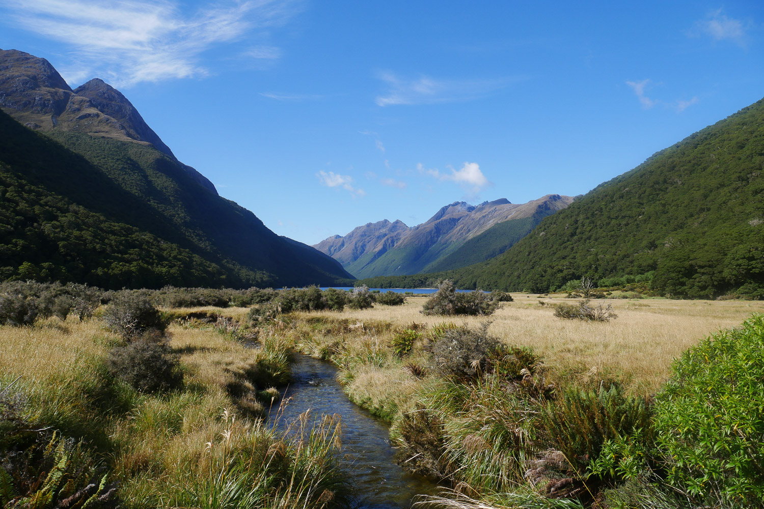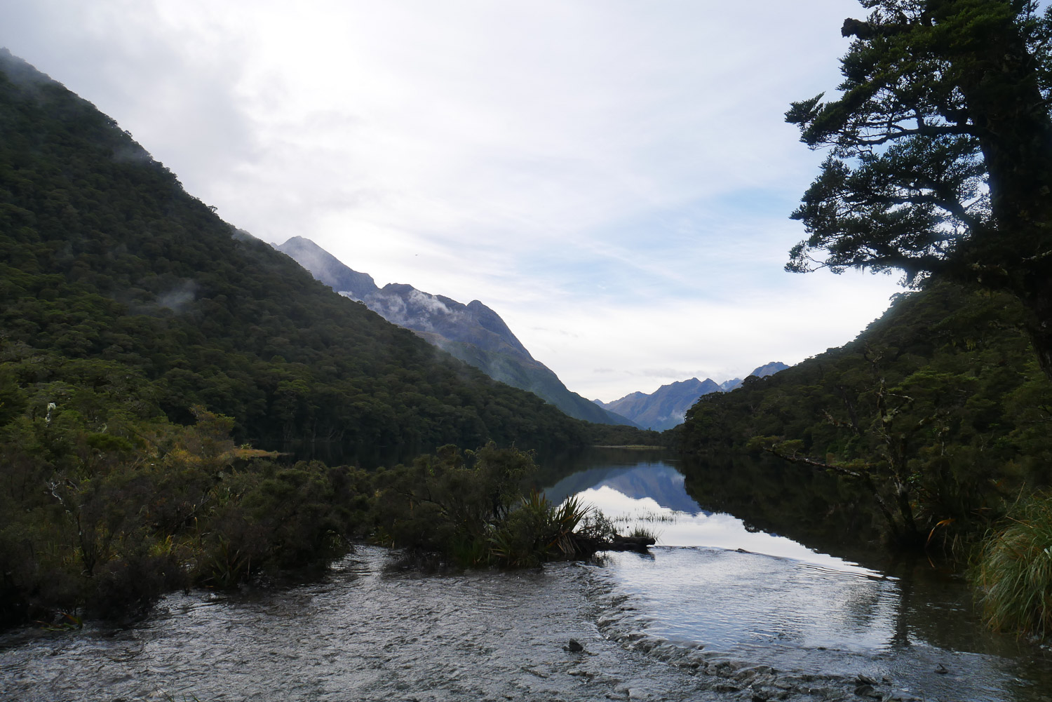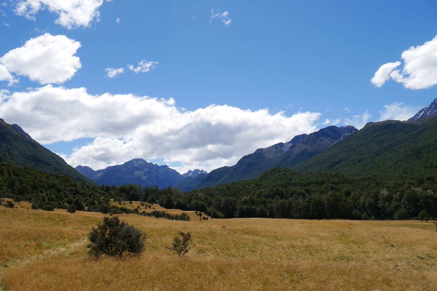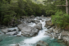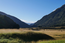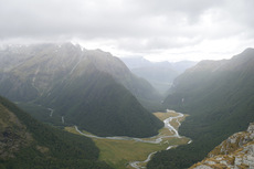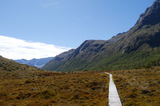 Die Nacht war erstaunlich ruhig in der Hütte. Keiner der geschnarcht hat. Zwei Stunden Fußmarsch waren für heute noch mindestens auf dem Plan bis zum Parkplatz. Nach dem Tag gestern war der Weg heute aber nicht mehr so beeindruckend. Am Parkplatz hab ich dann noch kurz gewartet, ob jemand vorbeikommt, der mich mitnehmen kann. Das wurde mir aber schnell zu blöd und ich bin einfach mal losgelaufen. Keine 10 Minuten später kam auch schon eine deutsche Familie vorbei, die mich mitgenommen hat. Die haben mich dann auch noch auf einen kleinen Abstecher ins Paradies mitgenommen. Ja, es gibt hier einen Ort, der „Paradise“ heißt. Der Name ist auch nicht ganz aus der Luft gegriffen. Es ist schon schön dort. Die Familie hat mich dann bei meinem Auto rausgelassen und ich bin nach Te Anau gefahren. Dort hab ich einen richtig schönen Campingplatz erwischt und hab erst mal geduscht und meine Wäsche gewaschen. Und hier hab ich dann auch gleich noch mal den deutschen vom Routeburn Track getroffen. Ich hab dann für morgen eine Bootstour im Milford Sound gebucht, hab mich ausgeruht und bin früh ins Bett.