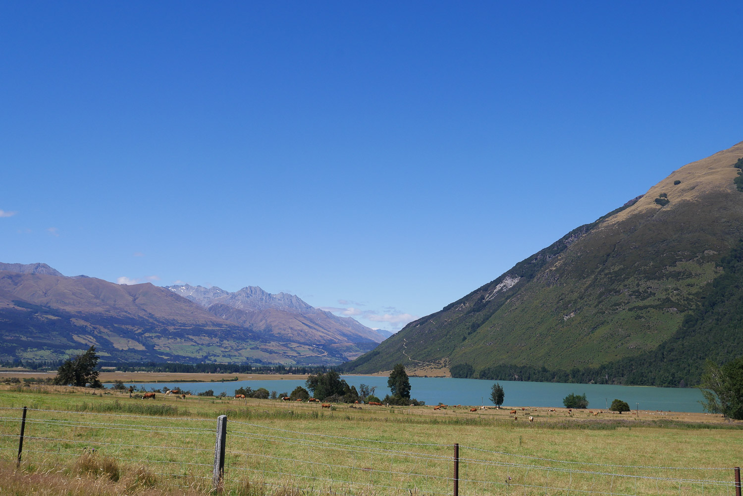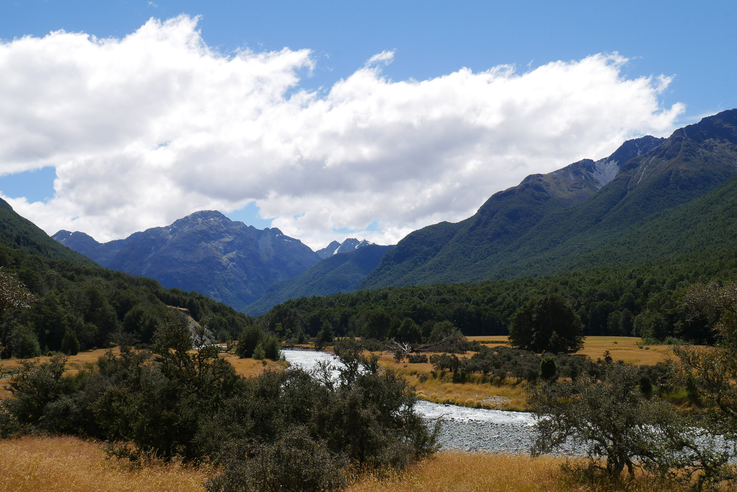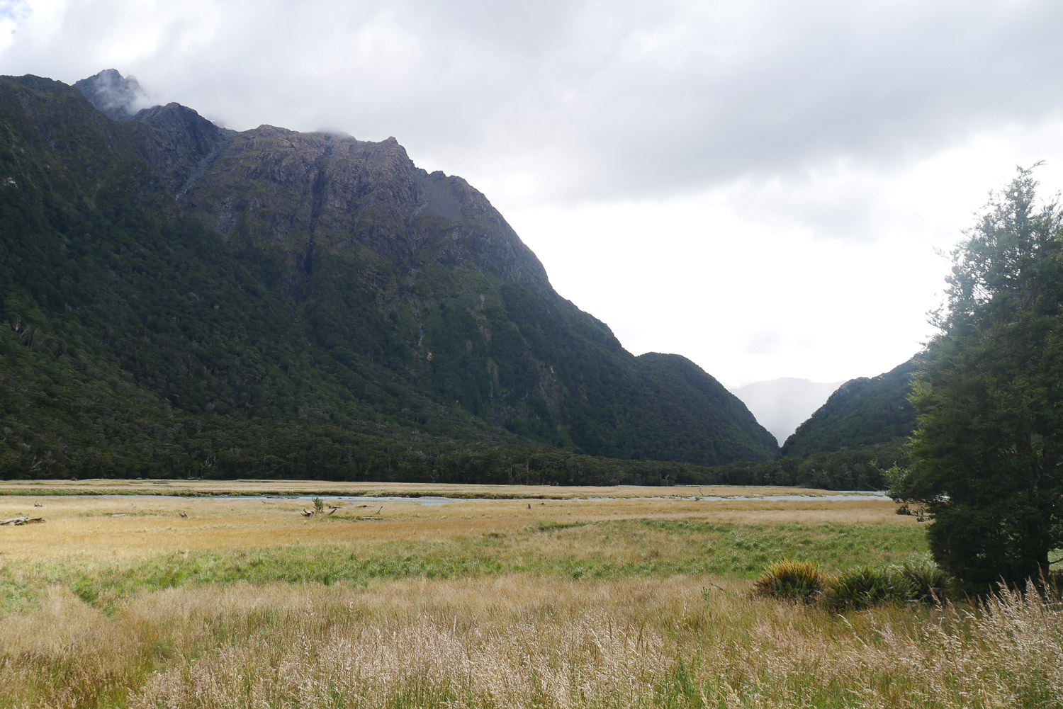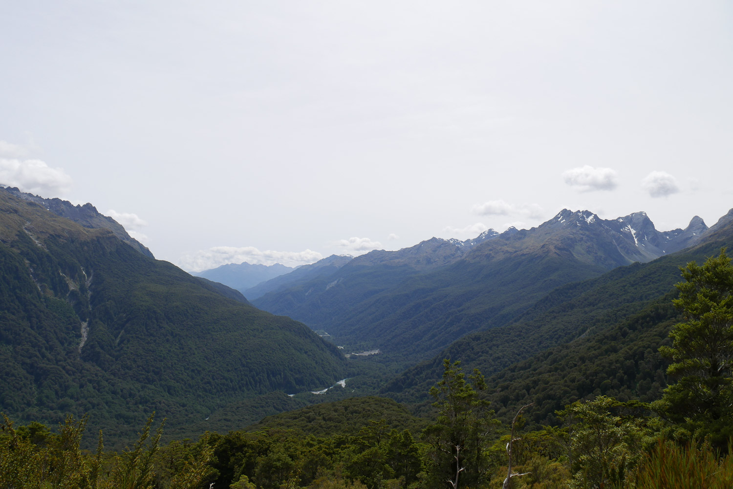 Die Nacht war erstaunlich ruhig in der Hütte. Keiner der geschnarcht hat. Zwei Stunden Fußmarsch waren für heute noch mindestens auf dem Plan bis zum Parkplatz. Nach dem Tag gestern war der Weg heute aber nicht mehr so beeindruckend. Am Parkplatz hab ich dann noch kurz gewartet, ob jemand vorbeikommt, der mich mitnehmen kann. Das wurde mir aber schnell zu blöd und ich bin einfach mal losgelaufen. Keine 10 Minuten später kam auch schon eine deutsche Familie vorbei, die mich mitgenommen hat. Die haben mich dann auch noch auf einen kleinen Abstecher ins Paradies mitgenommen. Ja, es gibt hier einen Ort, der „Paradise“ heißt. Der Name ist auch nicht ganz aus der Luft gegriffen. Es ist schon schön dort. Die Familie hat mich dann bei meinem Auto rausgelassen und ich bin nach Te Anau gefahren. Dort hab ich einen richtig schönen Campingplatz erwischt und hab erst mal geduscht und meine Wäsche gewaschen. Und hier hab ich dann auch gleich noch mal den deutschen vom Routeburn Track getroffen. Ich hab dann für morgen eine Bootstour im Milford Sound gebucht, hab mich ausgeruht und bin früh ins Bett.