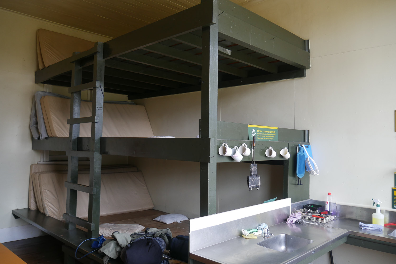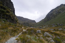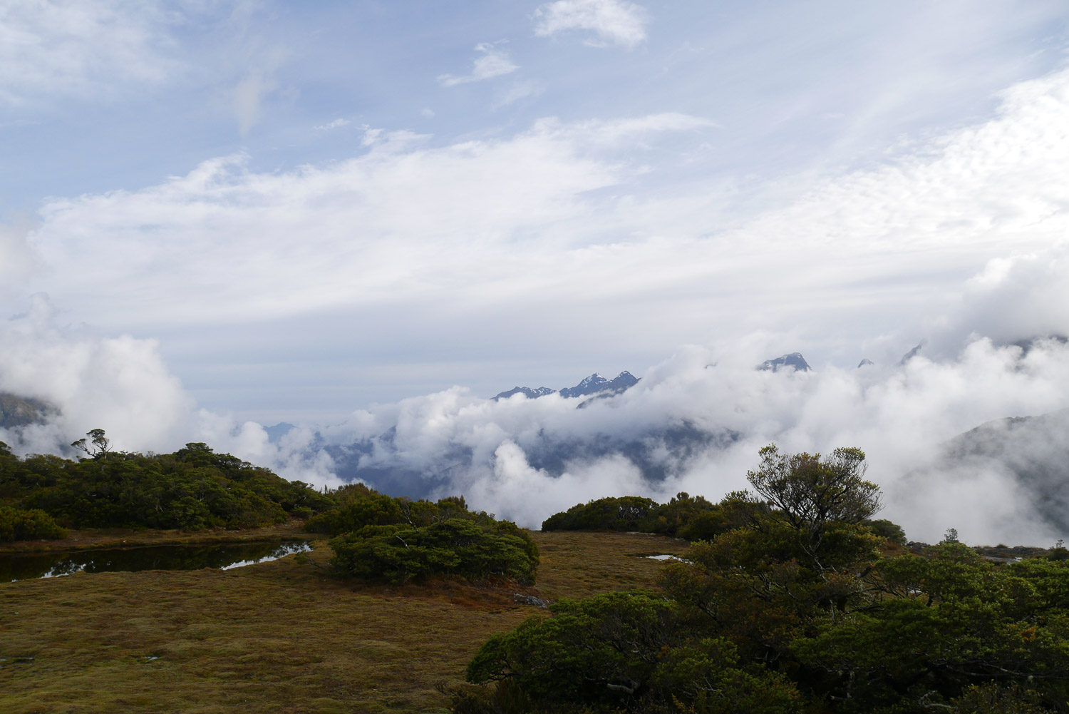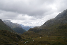 Ein schönes Gefühl, wenn man morgens rausschaut und es nicht regnet. Nach dem Frühstück durfte ich dann wieder meine immer noch nassen Wanderklamotten anziehen. Kein angenehmes Gefühl. Aber wenn jeder in der Hütte nasse Klamotten mitbringt, dann gibt es kaum Hoffnung, dass alles trocknet. Zuerst bin ich dann noch ohne Rucksack auf den Key Summit gelaufen. Die Berge waren noch in Wolken gehüllt. Zwar nicht die schöne Aussicht, aber auch ein schönes Bild. Ich hab dann meinen Rucksack in der Hütte geholt und bin auf meinen eigentlich weg aufgebrochen. Nach kurzer Zeit geht es dann auf den McKellar Pass. Im Vergleich zu gestern ein herrlicher Ausblick ohne eine Wolke am Himmel. Danach geht es dann langsam runter ins Tal. Der Weg am Ende zieht sich dann noch mal ordentlich, ist aber wunderschön. Die Hütte ist gerade mal zwei Jahre alt und hat über eine halbe Million gekostet. Die Hut Wardin war wirklich sehr nett. Der Abend war dann ganz gemütlich mit ein paar anderen und einem guten Kartenspiel. Heute sind nur alle so früh ins Bett. Bin ich halt auch schon vor Sonnenuntergang ins Bett.