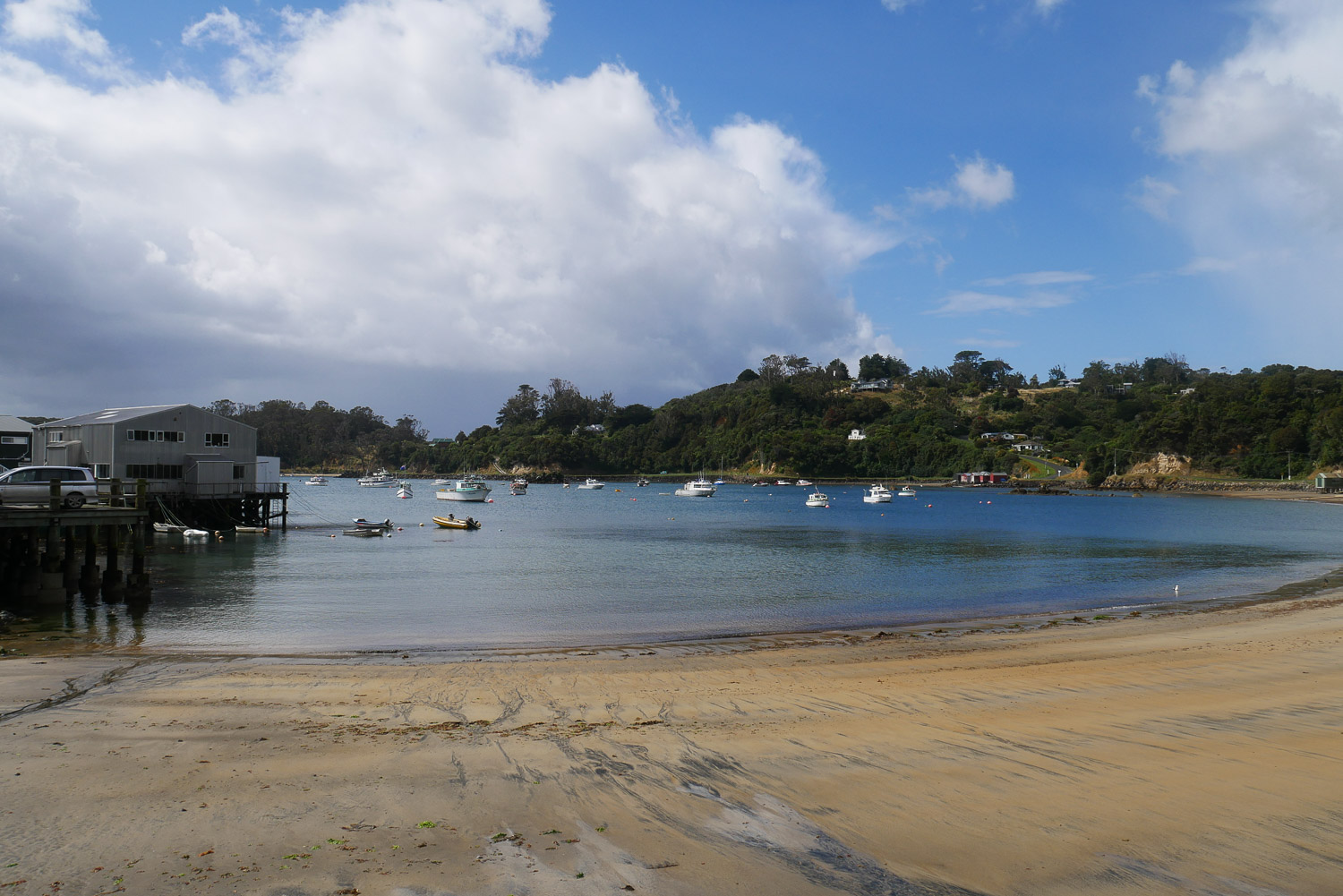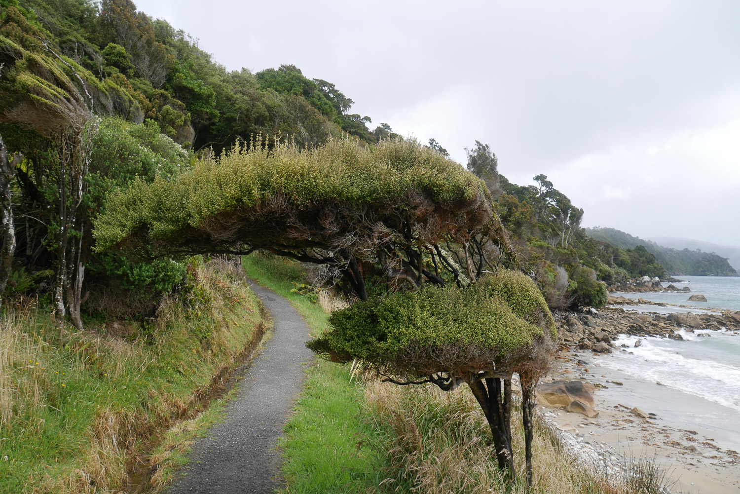 Heute Morgen ging es erst mal nach Bluff zur Fähre nach Stewart Island. Das war heute eine sehr raue Überfahrt. Mit den Wellen war das schon mal eine besondere Erfahrung, wenn das Boot oben auf einer Welle ist und links neben einem sich ein Abgrund bis zum Wasser auftut. Mit so einer Überfahrt hatte ich nicht gerechnet. Auf Stewart Island ging es dann erst mal zum DOC Visitor Center, um meine Tickets für die Hütten abzuholen. Als ich dann gerade losgehen wollte, hat das Wetter erst mal mit einem ordentlichen Regenschauer losgelegt. Inklusive leichtem Hagel und einem Blitz. Keine 10 Minuten später war dann auch schon wieder strahlend blauer Himmel. Ich bin dann mal losgelaufen. In der ersten Stunde hat sich aber dann gefühlt alle 5 Minuten ein Regenschauer mit Sonnenschein abgewechselt. Als es dann auf den eigentlichen Track ging, war das Wetter dann aber ganz gut. Der Weg geht viel an der Küste entlang, ist aber nicht ganz so langweilig und flach wie der Abel Tasman. Die angegeben Zeit hab ich mal wieder locker geschlagen. In der Hütte waren heute ungewöhnlicher Weise fast nur Frauen. Als ich dann am Nachmittag meine Spielkarten rausgeholt habe, hat sich auch schnell eine nette Spielrunde ergeben. Am Abend haben wir dann noch versucht Kiwis zu finden. Heute waren wir aber leider erfolglos. Vielleicht haben wir ja morgen mehr Glück.