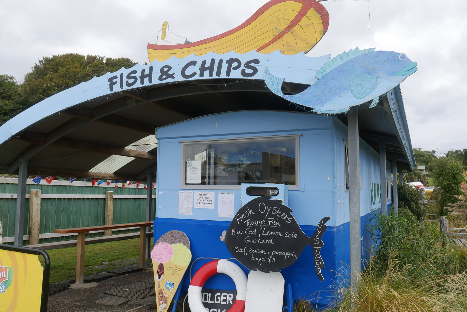 Das war heute mal eine angenehm ruhige Nacht in der Hütte. Frühstück, Rucksack packen und losgeht es auf die letzte Etappe. Der Weg heute war dann nicht mehr ganz so matschig wie gestern. Ich lag mal wieder gut in der Zeit und habe am Ende noch den längeren Weg zurück zum Hafen genommen. Das waren noch mal ordentlich viele Stufen auf dem Weg. Ich bin dann gerade noch rechtzeitig zum groß empfohlenen KaiKart gekommen, um noch Fish & Chips zu bekommen. Wobei ich ehrlich sein muss, dass für mich bis jetzt Fish & Chips immer recht gleich geschmeckt haben. Bei der Fähre habe ich dann tatsächlich noch mal den deutschen vom Routeburn Track getroffen. Die Überfahrt heute war ganz ruhig und es war kaum Wellengang. Zurück in Bluff bin ich dann ein Stück Richtung meinem nächsten Ziel gefahren und bin auf einen Campingplatz mit Dusche für die Nacht. So eine warme Dusche hat schon etwas.