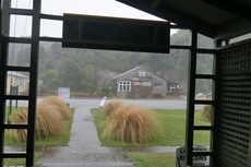 Der einzige Nachteil, wenn man für die Nacht zu einer Hütte läuft, man muss am nächsten Tag wieder zurücklaufen. Hab aber meine Zeit noch mal um eine halbe Stunde verbessert. Das Wetter war ganz gut, aber ich musste zwischendurch eine kleine Pause machen, bis ein kleiner Schauer vorbeigezogen ist. Ich hab dann noch einen von der Hütte für ein Stück mitgenommen und bin dann nach Invercargill gefahren. Schon auf dem Weg kann man erkennen, dass hier immer ein ordentlicher Wind weht. Die ganzen Bäume haben eine eindeutige Neigung in eine Richtung. In Invercargill bin ich dann zu einem Campingplatz, der fast im Zentrum liegt. Es war schon relativ ausgebucht, aber der Besitzer hat mir dann für die erste Nacht den Platz unterm Carport gegeben. Als Erstes habe ich dann mal wieder eine schöne warme Dusche genossen und mein Auto ein wenig aufgeräumt. Danach hab ich dann die hunderten Bilder der letzten Woche von der Kamera kopiert und aussortiert. Bis ich dann auch endlich mit dem Backup der Bilder fertig war, war es auch schon Zeit loszugehen. Heute habe ich die City Impact Church in Invercargill besucht. Die Kirche ist in einem alten Theater direkt an der Hauptstraße. Ich wurde gleich freundlich begrüßt und wurde auch gleich zu einer heißen Schokolade eingeladen. Der Lobpreis war ganz gut und die Predigt wirklich sehr spannend und gut. Die Predigt war heute eine Liveübertragung aus Auckland, wo es auch eine City Impact Church gibt. Nach dem Gottesdienst hab ich mir dann mal wieder einen leckeren Burger erlaubt. Ist ja schließlich auch Sonntag.