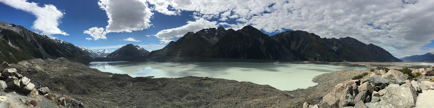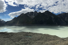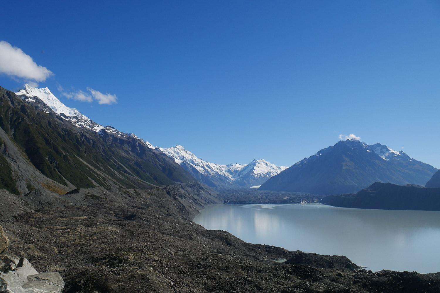 Heute Morgen gab es dann noch mal ein Luxusfrühstück mit den Resten von gestern. Danach hieß es zusammenpacken und für die nächste Zeit mal einkaufen. Noch schnell volltanken und losging es mit der ersten Fahrt zu zweit zum Mt. Cook. Das ist zwar schon das zweite Mal für mich, aber es ist definitiv schön genug, um noch mal hinzugehen. Für mich gibt es endlich auch mal wieder Abwechslung bei der Musik, da Philipp ein paar CDs mitgebracht hat. Mir ist dann während der Fahrt auch wieder ziemlich bewusst geworden, dass nach der Zeit in Neuseeland voll viele Dinge ganz normal geworden sind und nichts mehr Besonderes. Wo Philipp noch voll begeistert ist, denke ich nur, hab ich schon öfters und schöner gesehen. Die Fahrt hat dann mehr oder weniger auch schon den ganzen Tag eingenommen. Am Campingplatz sind wir dann noch zum Gletschersee gelaufen bevor wir das erste Mal auch selbst zu Abend gekocht haben. Wir saßen dann noch eine Weile draußen und haben den atemberaubenden Sternenhimmel bewundert. Mt. Cook liegt in einem Schutzgebiet für Lichtverschmutzung. Darum sieht man hier noch mal mehr Sterne als sonst in Neuseeland. Und auch das sind immer schon viele.
