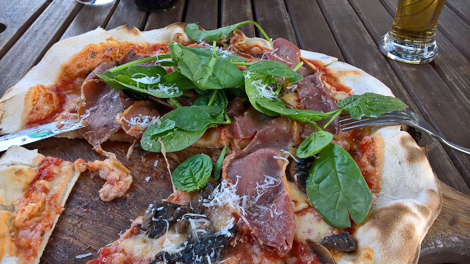 Danach sind wir dann nach Wanaka für die Nacht gefahren. Wir sind wieder die schöne Passstraße gefahren. Mit dem Campingplatz hat dann unser Luxusabend begonnen. Es gab einen kostenlosen Wellnessbereich mit Pool und Sauna den wir gleich genutzt haben. Danach sind wir mit einem kostenlosen Shuttle vom Campingplatz ins Stadtzentrum gefahren. Dort sind wir dann zu einem Italiener fürs Abendessen und haben uns bevor wir es realisieren konnten 9 $ teuren Sprudel aus Italien bestellt. Das ist besonders amüsant, wenn man darüber nachdenkt, dass wir in den letzten Tagen nicht mal offizielles Trinkwasser getrunken haben. Aber die Pizza war richtig lecker.
