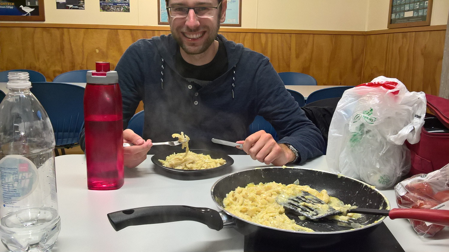 In der Nacht hat es ordentlich angefangen zu regnen. Da war heute mal nix mit zum Sonnenschein aufzuwachen. Aus dem Auto raus tritt man erst mal in eine große Pfütze davor. Nach dem Frühstück hat es netterweise kurz etwas weniger geregnet und wir konnten das nasse Zelt schnell abbauen. Begleitet vom Regen sind wir dann nach Nelson gefahren. Dort haben wir leider ganz knapp einen Dudelsackumzug verpasst. Heute sind hier wohl irgendwelche Dudelsack Meisterschaften. Wir sind dann ein bisschen durch Nelson gelaufen und haben die Kathedrale angeschaut. Danach haben wir uns für ein Kinobesuch als Schlechtwetterprogramm entschieden. Ein richtig süßer kleiner Kinosaal. Wir haben Manchester by the Sea angeschaut. Ein ganz guter Film, hebt aber die Stimmung bei dem schlechten Wetter auch nicht unbedingt. Anstatt in Nelson zu übernachten sind wir dann gleich schon nach Picton gefahren und haben dort eine Nacht mehr gebucht. Einmal weniger das Zelt im Regen auf und abbauen. Zum Abend hab ich dann mal wieder meine Kochkünste ausgepackt und leckere Käsespätzle gekocht.