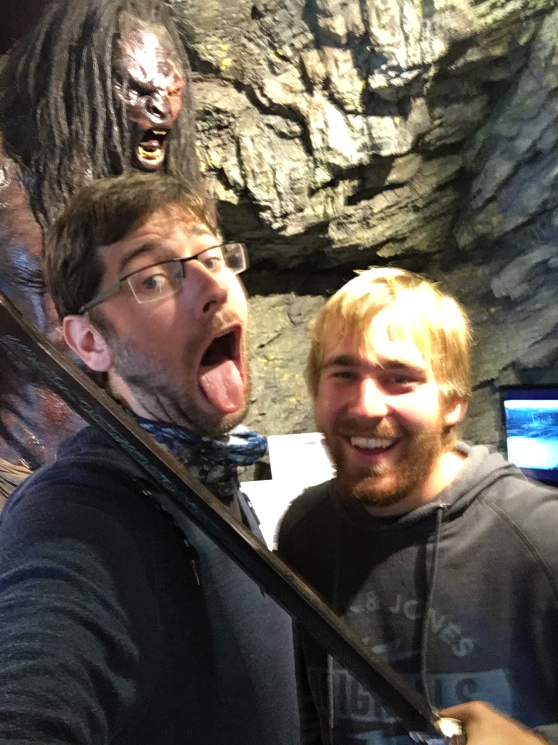 Wer kam den auf diese bescheuerte Idee, die erste Fähre morgens zu nehmen. Spät ins Bett, schlecht schlafen und dann auch noch früh aufstehen. Einfach eine schlechte Mischung. Hundemüde gab’s ein kurzes Frühstück und dann gleich zum Check-in zur Fähre. Heute war mal wieder eine etwas rauere Überfahrt und man konnte es einfach nicht so genießen. In Wellington sind wir dann als erstes zur Cuba Street um etwas zu Mittag zu essen. Danach sind wir ins Te Papa Museum. Ich hatte die Gallipoli Ausstellung beim letzten Mal zwar schon ausführlich angeschaut, aber es gibt trotzdem noch kleine Details, die man erst beim zweiten Mal sieht. Als Nächstes ging es dann zum Weta Cave. Wir hatten vergessen eine Tour im Voraus zu buchen und dachten eigentlich, dass wir nur wie bei meinem letzten Besuch und umschauen und die kurze Dokumentation anschauen. Die Frau an der Kasse war richtig freundlich und hat gemeint wir kommen eigentlich zur perfekten Zeit. Zuerst können wir die Dokumentation anschauen und dann noch zur letzten Führung vom Tag. Wir haben dann auch gleich noch eine kurze Führung durch den Shop bekommen und haben eines der teuren Schwerter für Bilder bekommen. Richtig nett. Die Dokumentation war die gleiche wie beim letzten Mal, aber immer noch interessant. Die Führung war dann aber der Hammer. Man konnte sehr gut hinter die Kulissen der Künstler sehen, die die ganzen Kostüme und Filmrequisiten herstellen und der Führer hatte richtig viel Hintergrundwissen zu den Filmen zu erzählen. Die 25 $ waren allemal gut investiert. Danach sind wir dann noch schnell zum Einkaufen, zum Campingplatz, kochen und dann Todmüde ins Bett fallen. So früh stehe ich so schnell nicht mehr auf.
